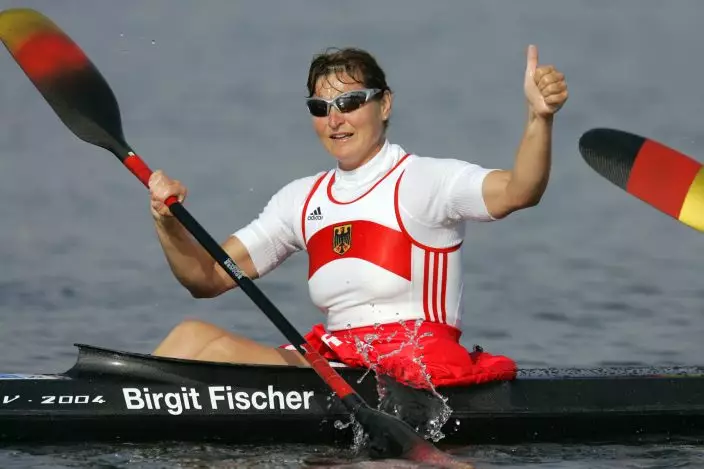 German kayaker Birgit Fischer set an incredible record of consistency in Athens, becoming the first person in any sport to win two medals in five different Olympics. Fischer started her Olympic career at the 1980 Moscow Games while competing for East Germany. After missing the boycotted 1984 Los Angeles Games, she won at least two medals in Seoul, Barcelona, Atlanta and Sydney before doing the same in Athens.