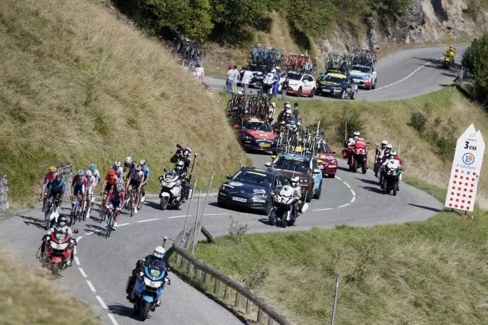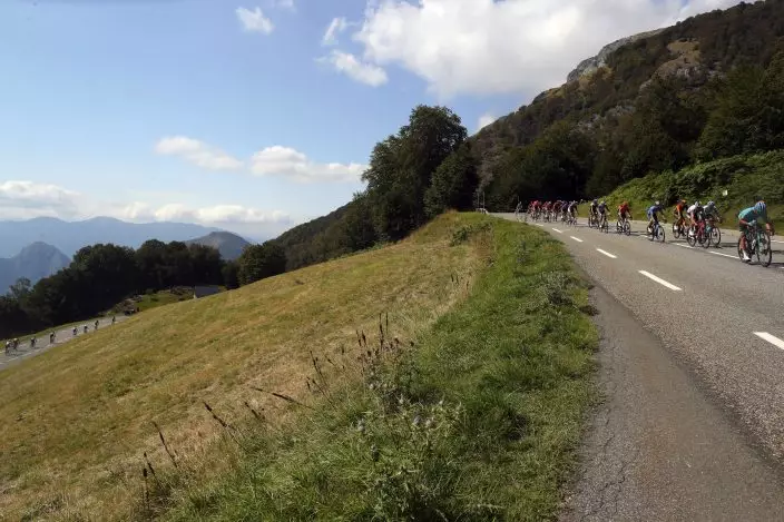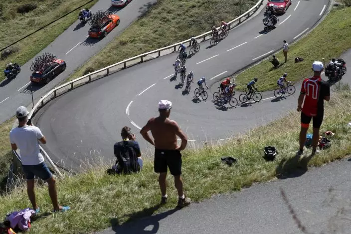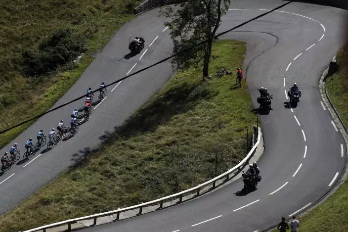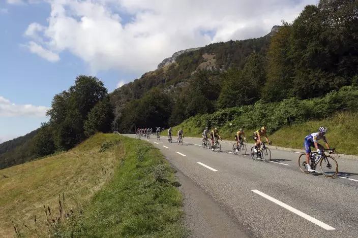 Riders inthe breakeway climb Mente pass during the stage 8 of the Tour de France cycling race over 141 kilometers (87.6 miles) from Cazeres-sur-Garonne to Loudenvielle, France, Saturday, Sept. 5, 2020. (AP PhotoThibault Camus)