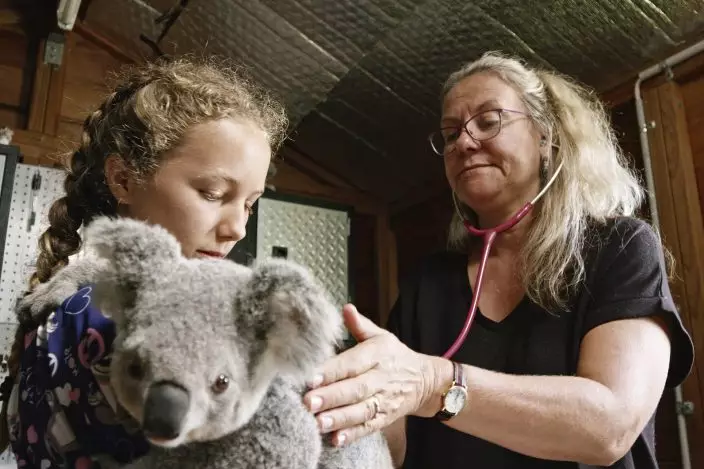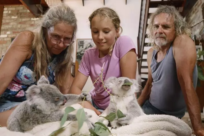 This image released by Netflix shows Ali Bee, from left, Izzy Bee and Tim Bee in a scene from "Izzy's Koala World," which follows an 11-year old girl as she helps her veterinarian mom take care of koalas. (Netflix via AP)