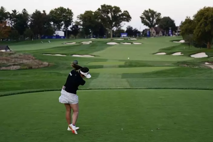 Jennifer Kupcho hits waits on the seventh hole during the second round of the KPMG Women's PGA Championship golf tournament at the Aronimink Golf Club, Friday, Oct. 9, 2020, in Newtown Square, Pa. (AP PhotoChris Szagola)