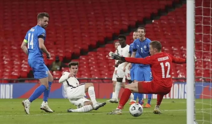 Mason Mount slid in to double England's lead four minutes later. England's dominated what was a largely meaningless game in an empty Wembley Stadium, but didn't score again until Iceland was reduced to 10 men.