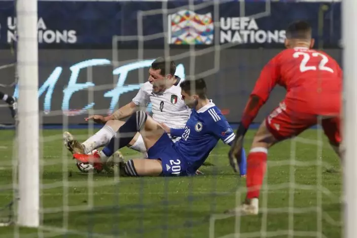 Italy dominated from the start and opened the scoring in the 22nd minute. Manuel Locatelli sent Lorenzo Insigne down the left flank and he crossed for Belotti, whose volley looped over Bosnia goalkeeper Kenan Pirić.