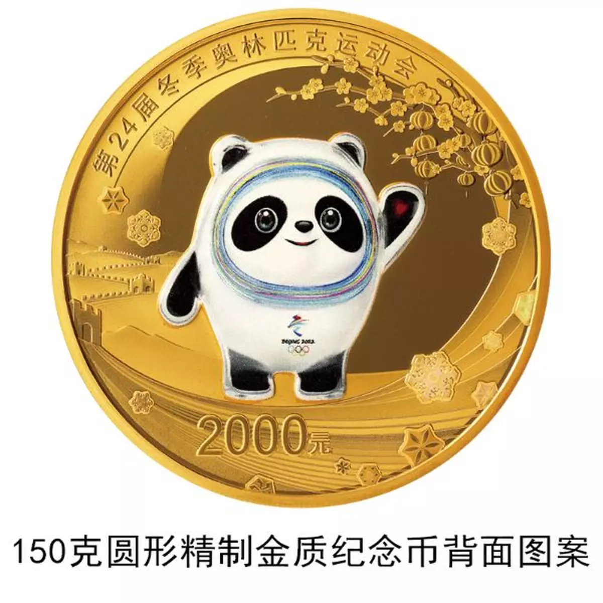 One of the gold coins, which is 60 mm in diameter, contains 150 g of pure gold and has a face value of 2,000 yuan (about 304.2 U.S. dollars), with a maximum issuing limit of 1,000.