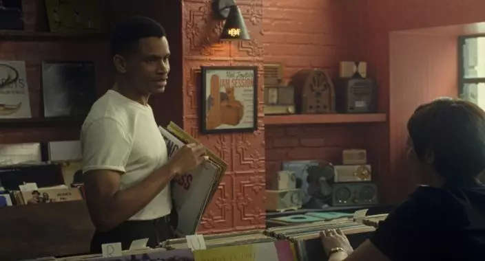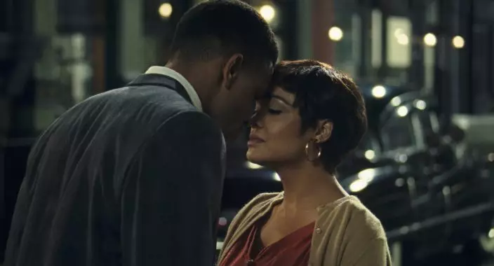Nnamdi Asomugha, left, and Tessa Thompson appear in a scene from "Sylvie's Love." (Amazon Studios via AP)