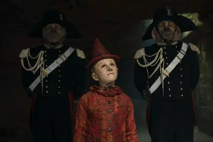 This image released by Roadside Attractions shows Federico Ielapi in a scene from "Pinocchio." (Greta De LazzarisRoadside Attractions via AP)