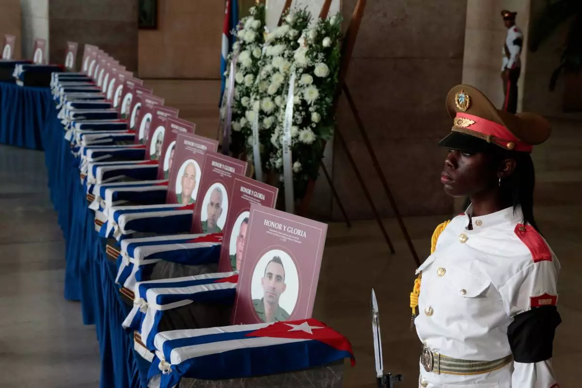 The demonstration was organized a day after tens of thousands of Cubans gathered at the headquarters of the Ministry of the Armed Forces to pay their respects to the 32 officers slain.