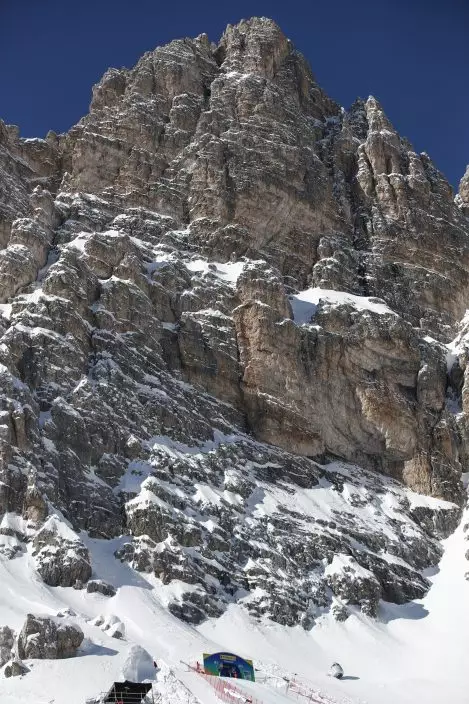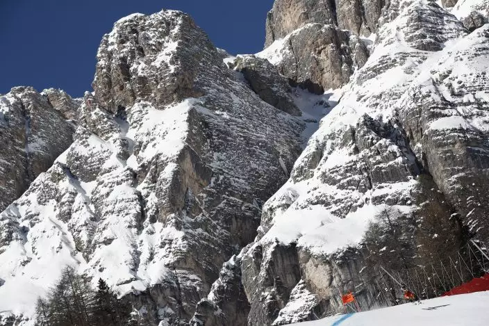 The women’s downhill that runs next to the men’s course is famous for the Tofana Schuss, a chute between two cliffs.