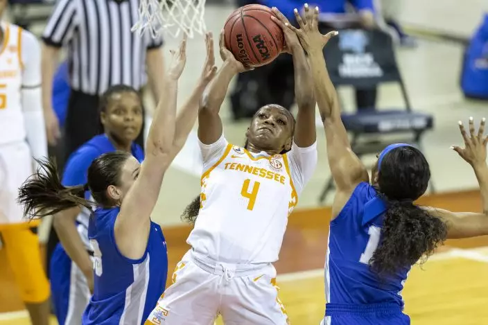 Burrell’s floating jumper and a putback from Walker after her own missed free throw put Tennessee ahead 56-44 and in control, and the lead grew from there.