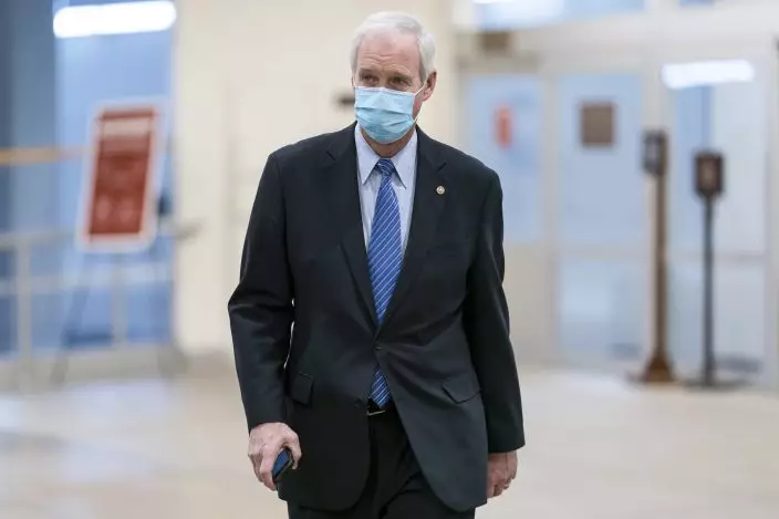 FILE - In this March 16, 2021, file photo Sen. Ron Johnson, R-Wis., arrives as the Senate holds votes on nominees for the Biden administration, at the Capitol in Washington. The Wisconsin Republican is the only senator in his party facing reelection next year in a state that backed President Joe Biden. But rather than moderate his politics to accommodate potentially shifting voter attitudes, Johnson is focusing even more intently on cultural issues that appeal to the GOP's overwhelmingly white base. (AP PhotoJ. Scott Applewhite, File)