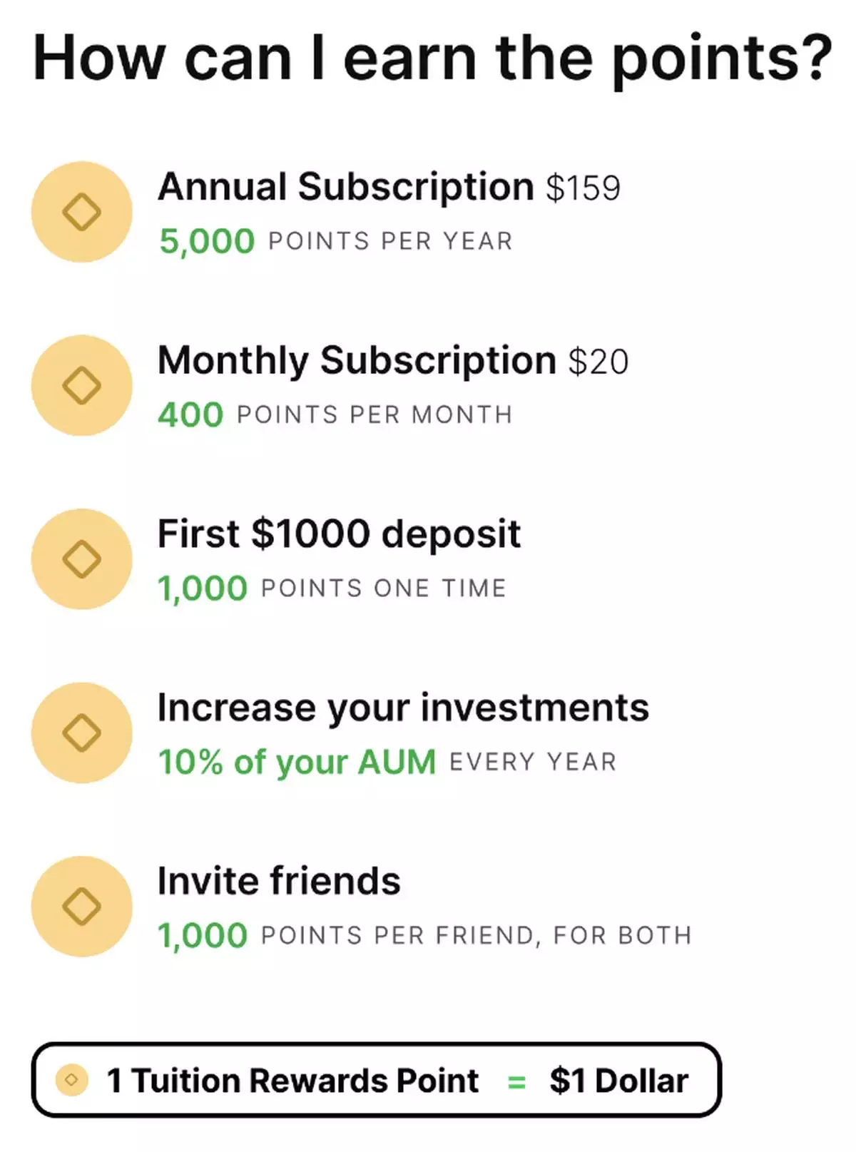 For an annual subscription of $159, Streetbeat offers $5,000 in reward points. Additionally, subscribers receive a 10% annual bonus on their assets under management as points. For instance, a family could save up to $55,690 on tuition fees per member at San Diego University.