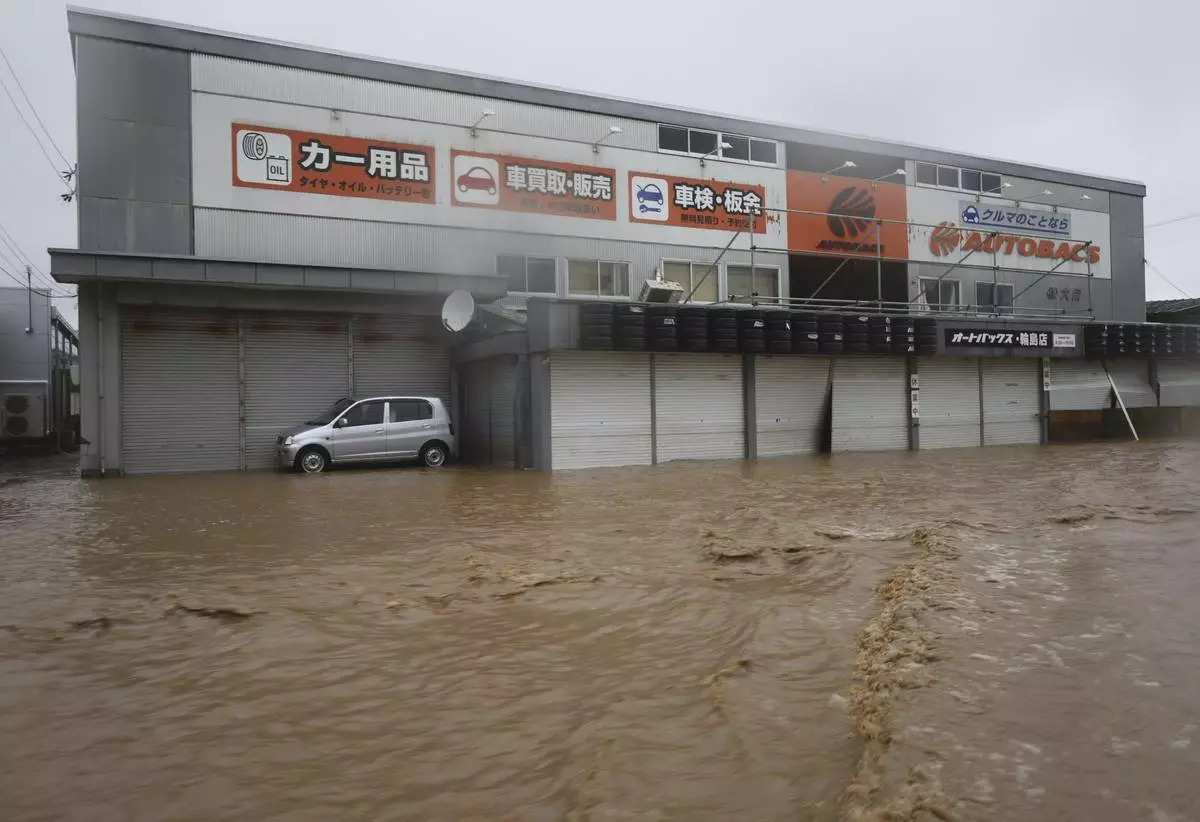 A number of roads flooded by muddy water were also blocked. Hokuriku Electric Power Co. said more than 5,000 homes were still without power Sunday. Traffic lights were out in the affected areas. Many homes were also without water supply.