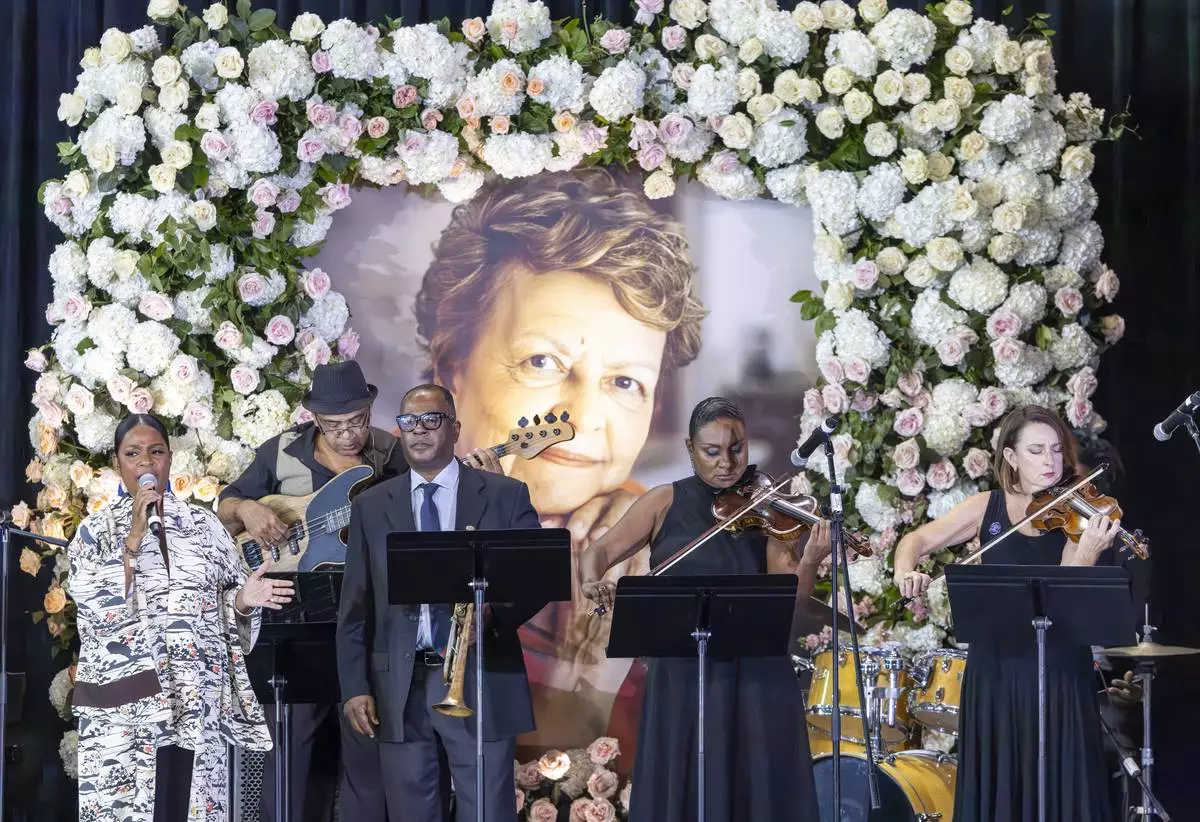 A musical tribute to Sybil Haydel Morial is played at Xavier University of Louisiana during a Celebration of Life, Monday, Sept. 23, 2024, in New Orleans. (Chris Granger/The Times-Picayune/The New Orleans Advocate via AP)