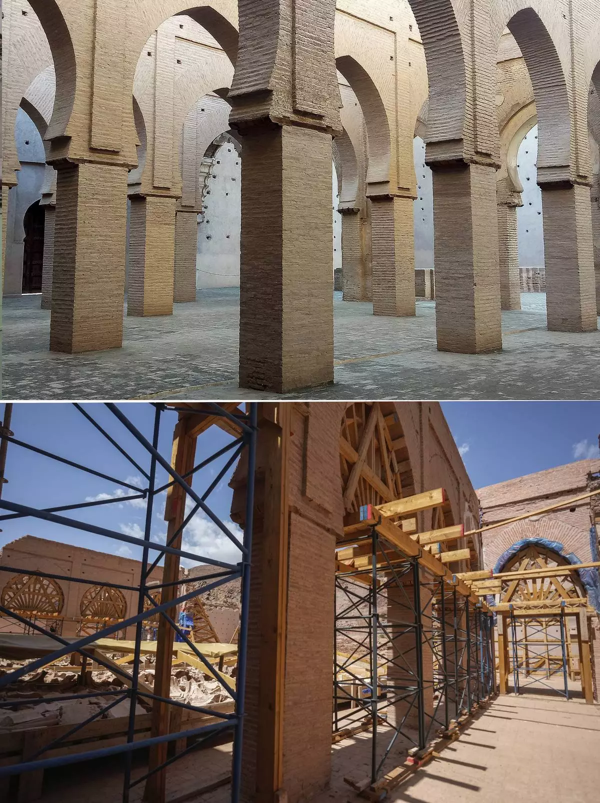 After nearly 900 years, the Great Mosque of Tinmel lay in pieces — its minaret toppled, its prayer hall full of rubble, its outer walls knocked over.