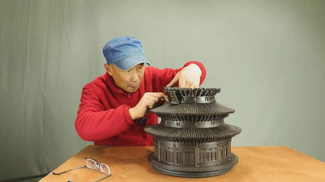 After scrapping three versions of the model, the 81-fold miniature of the Hall of Prayer for Good Harvest was completed in five years. This miniature is composed of 7,108 parts, the smallest of which is only 1.5 mm. Each part of the building can be disassembled, and the doors and windows can be opened and closed freely.