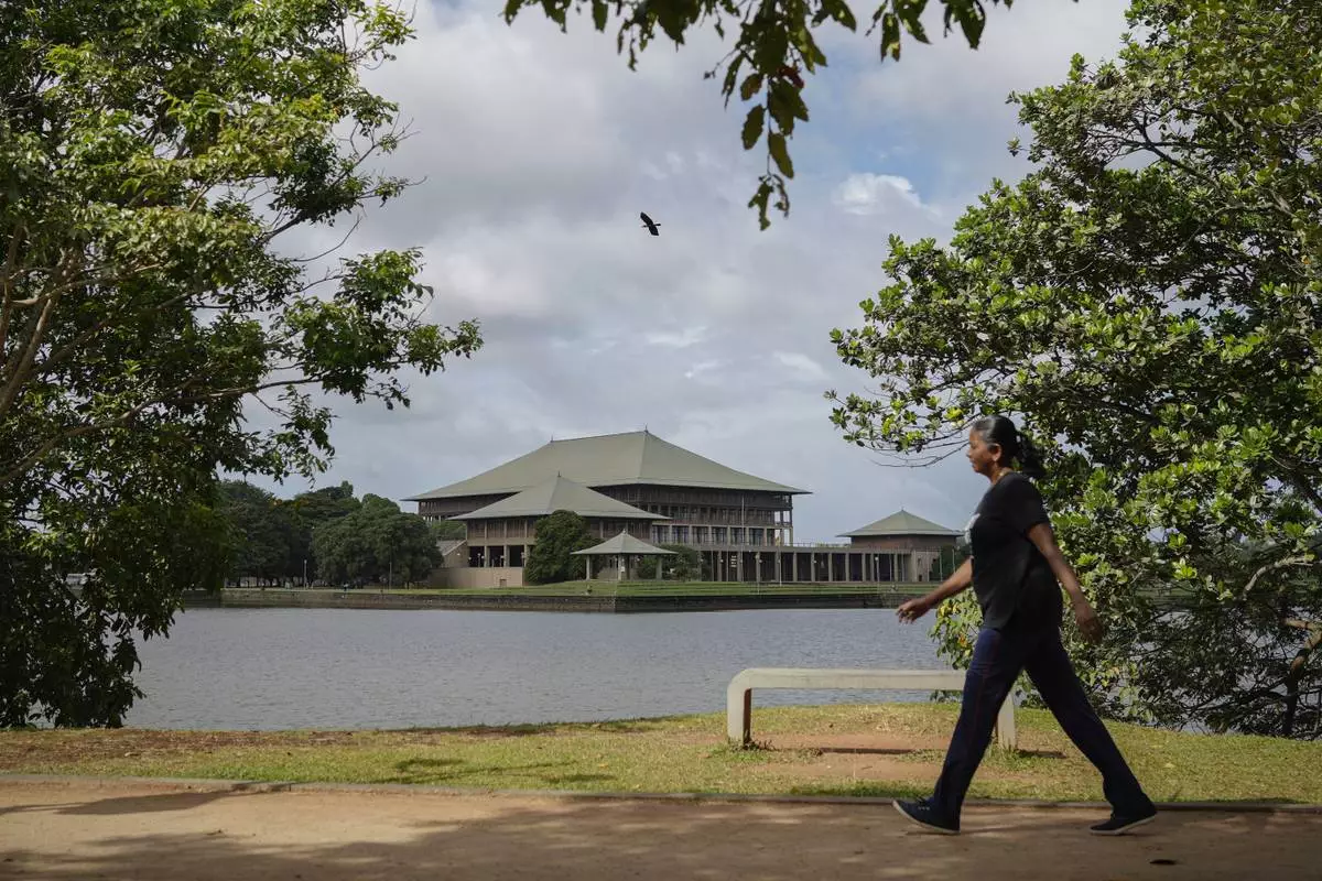 A man walks outside parliamentary complex in Colombo, Sri Lanka, Wednesday, Sept. 25, 2024. (AP Photo/Eranga Jayawardena)