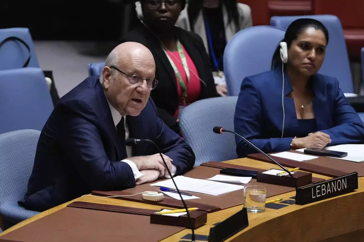 Lebanon's Prime Minister Najib Mikati speaks during a meeting of the Security Council, Wednesday, Sept. 25, 2024, at U.N. headquarters. (AP Photo/Frank Franklin II)