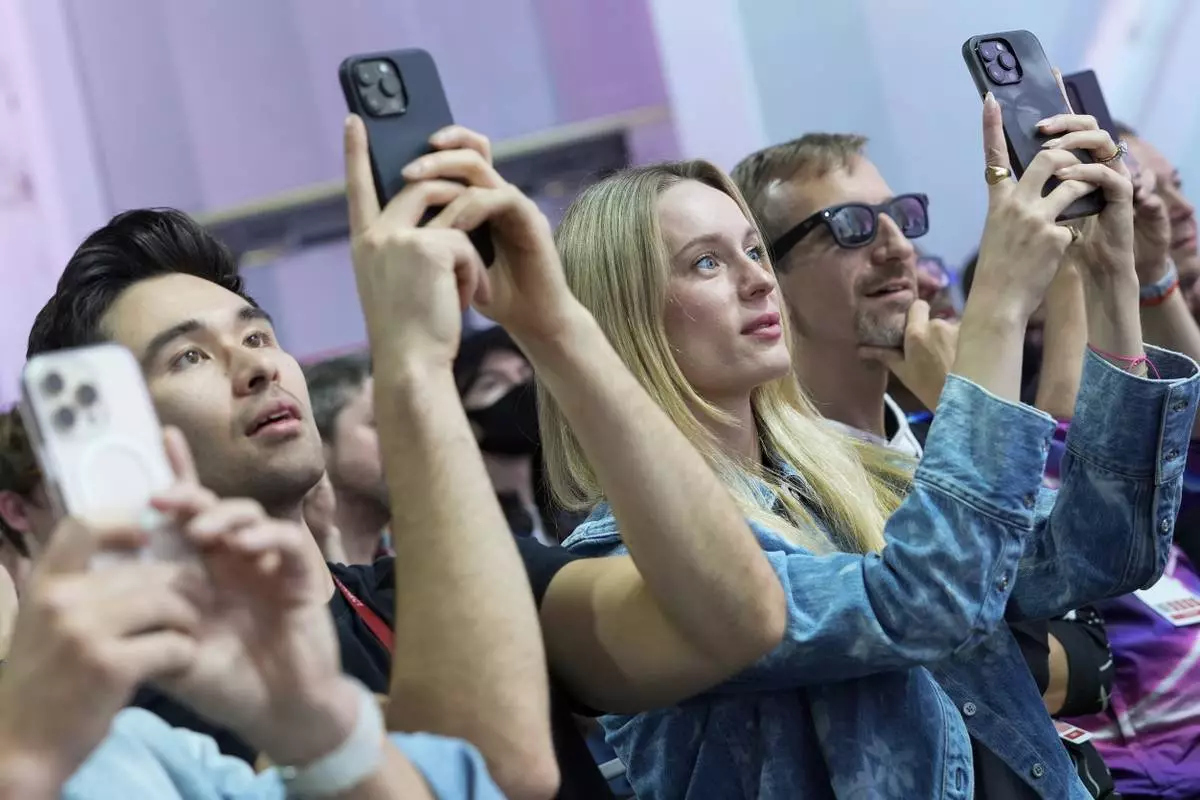 People use their cell phones as they watch a presentation at the Meta Connect conference Wednesday, Sept. 25, 2024, in Menlo Park, Calif. (AP Photo/Godofredo A. Vásquez)