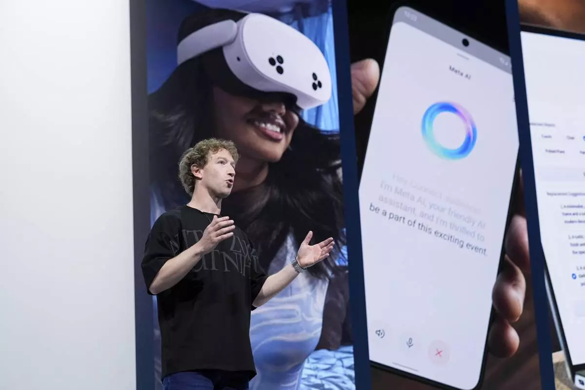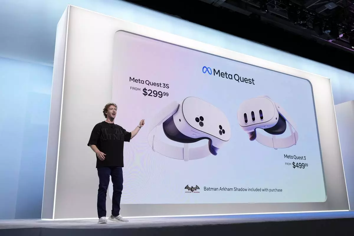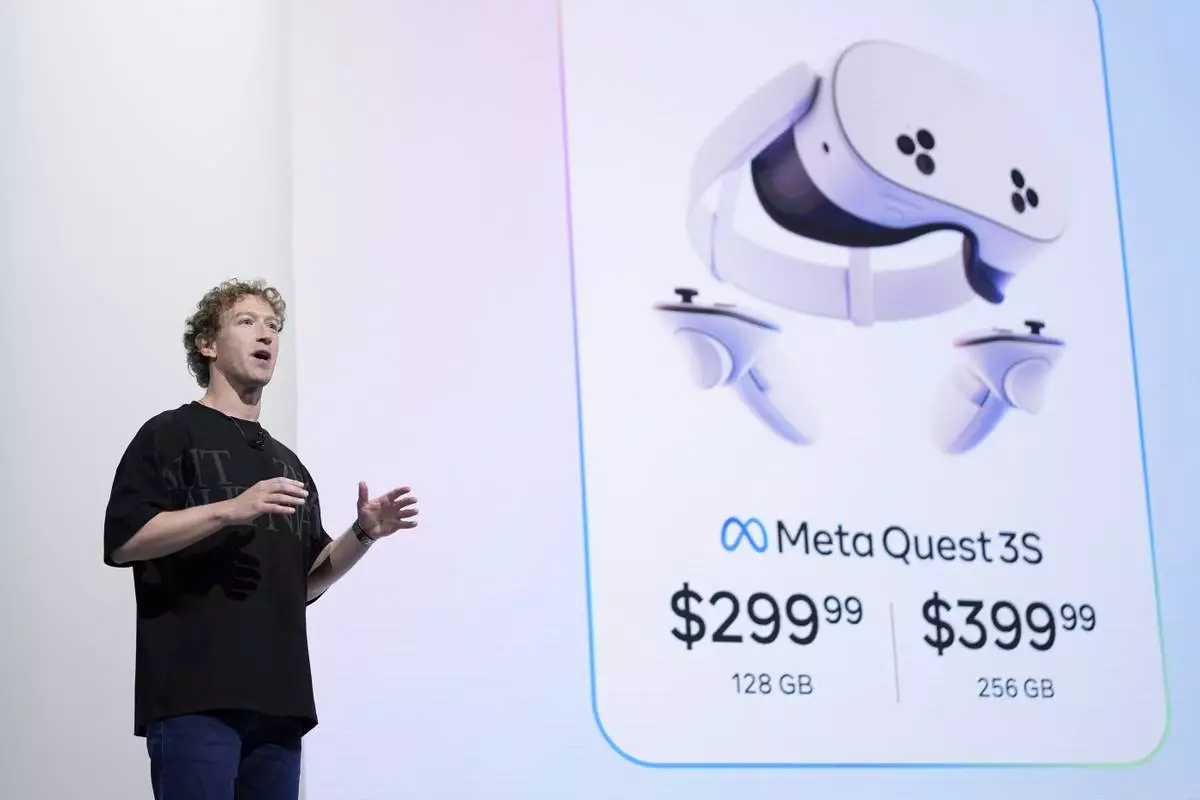 Mark Zuckerberg talks about the Meta Quest 3S during the Meta Connect conference Wednesday, Sept. 25, 2024, in Menlo Park, Calif. (AP Photo/Godofredo A. Vásquez)