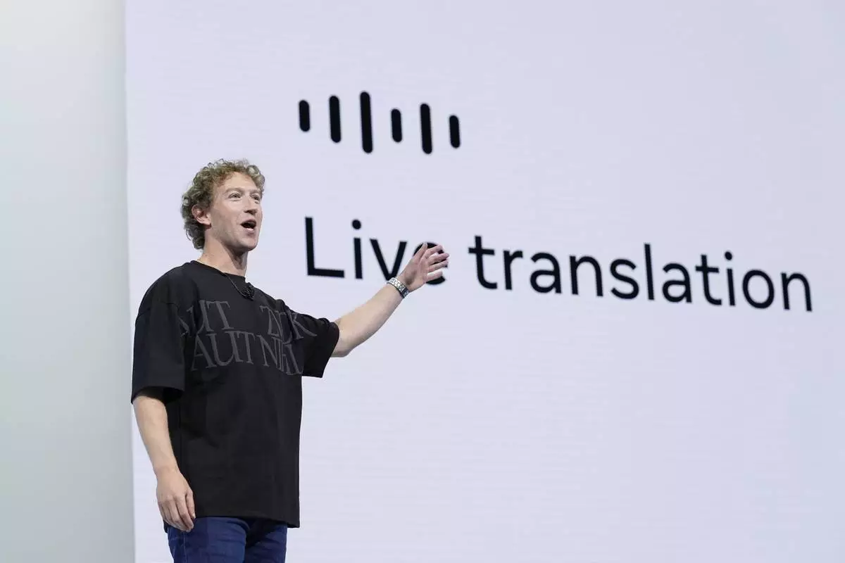 Mark Zuckerberg speaks about the live translation feature on the Ray-Ban Meta smart glasses during the Meta Connect conference Wednesday, Sept. 25, 2024, in Menlo Park, Calif. (AP Photo/Godofredo A. Vásquez)