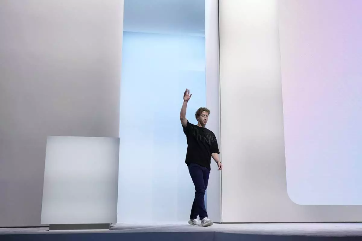 Mark Zuckerberg waves to the crowd as he exits the stage at the Meta Connect conference Wednesday, Sept. 25, 2024, in Menlo Park, Calif. (AP Photo/Godofredo A. Vásquez)
