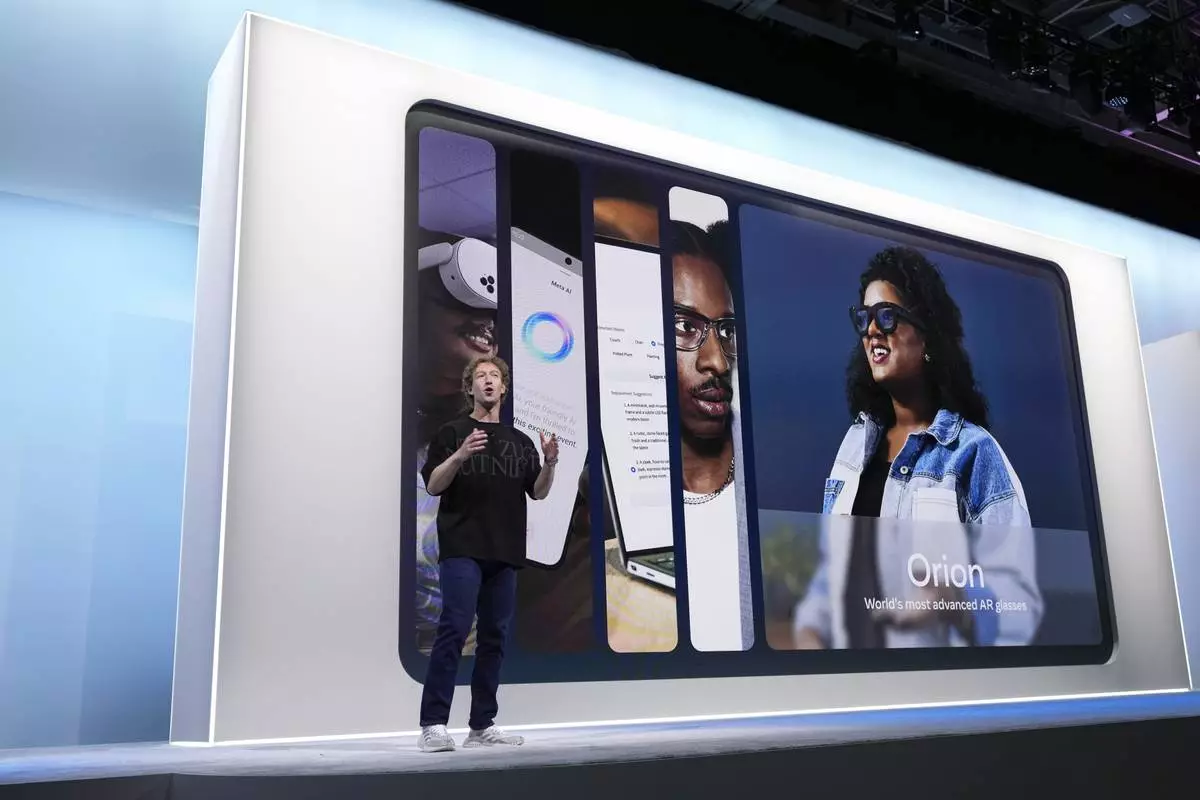 Mark Zuckerberg talks about the Orion AR glasses during the Meta Connect conference Wednesday, Sept. 25, 2024, in Menlo Park, Calif. (AP Photo/Godofredo A. Vásquez)
