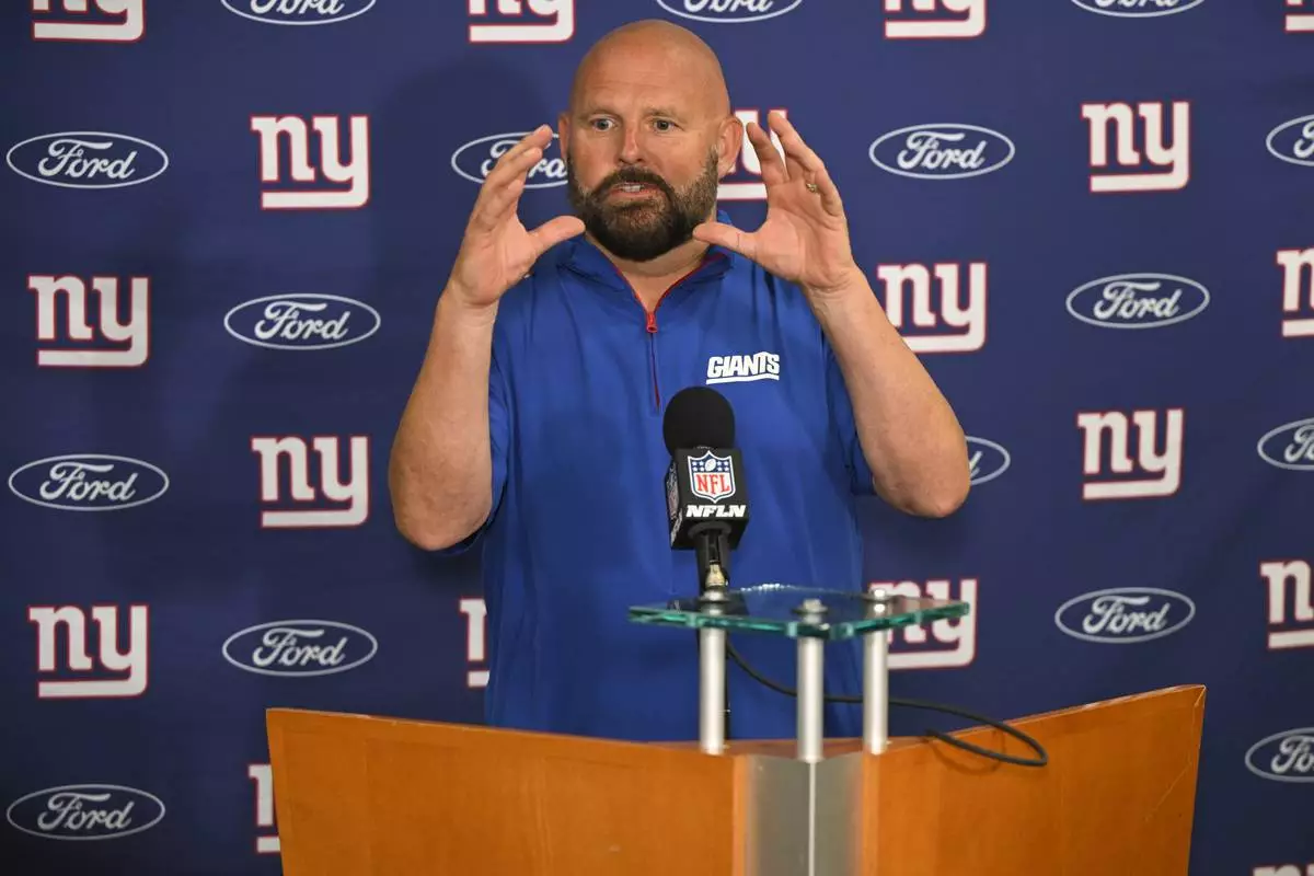 New York Giants head coach Brian Daboll speaks during a news conference following an NFL football game against the Cleveland Browns, Sunday, Sept. 22, 2024, in Cleveland. (AP Photo/David Richard)