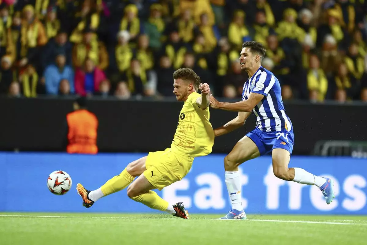 Porto, a two-time champion in Europe’s second-tier league, got an early goal from Samu. Kasper Høgh's equalized and Hauge netted twice for a 3-1 lead. Porto reduce the deficit to one in the final minute through substitute Deniz Gül.