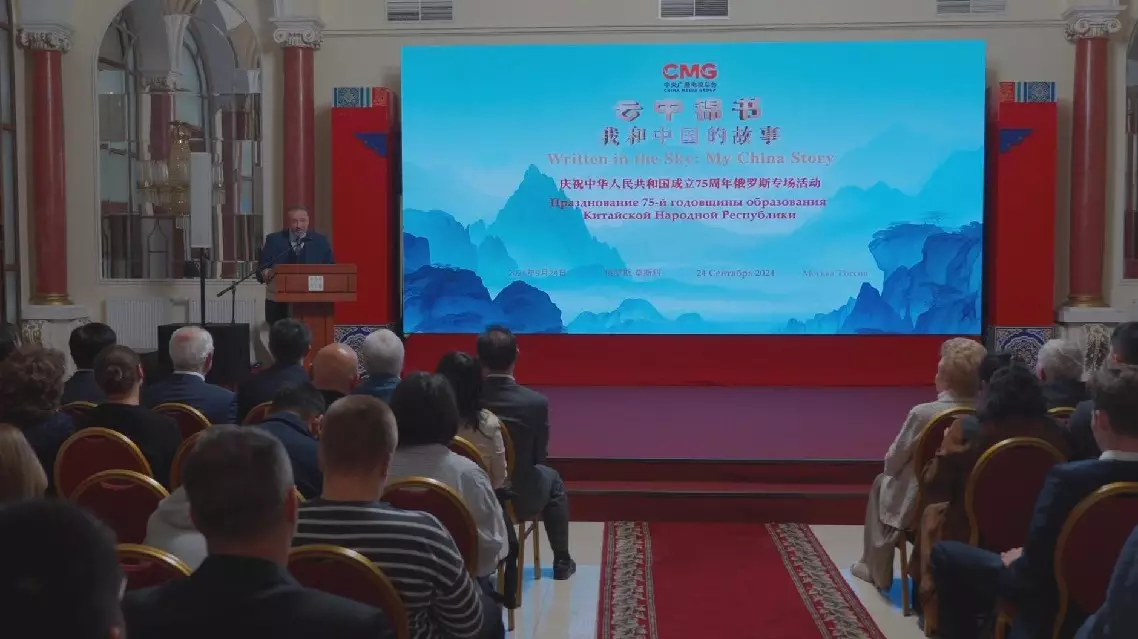 A special cultural exchange event, part of the "Written in the Sky: My China Story" serial events sponsored by China Media Group (CMG), was held in Moscow, Russia on Tuesday to mark the 75th anniversary of the founding of the People's Republic of China (PRC), which will be celebrated on Oct. 1.