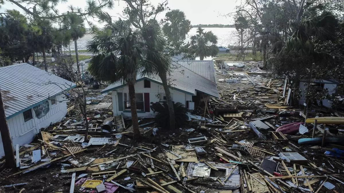 Destruction to the Faraway Inn Cottages and Motel is seen in the aftermath of Hurricane Helene, in Cedar Key, Fla., Friday, Sept. 27, 2024. (AP Photo/Gerald Herbert)