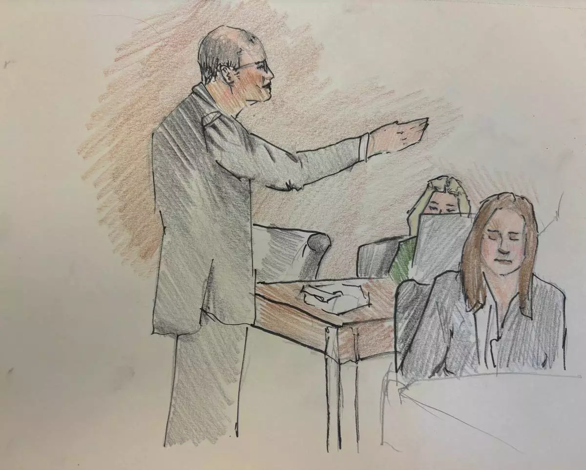 This courtroom sketch depicts defense attorney Steven Biskupic during Milwaukee County Circuit Judge Hannah Dugan's trial on Monday, Dec. 15, 2025 in Milwaukee, Wis. (Adela Tesnow via AP, Pool)