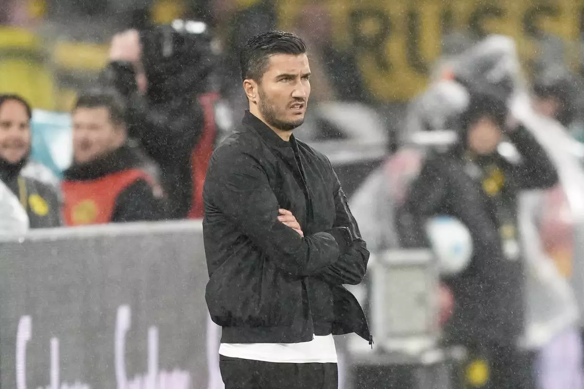 Dortmund's head coach Nuri Sahin stands by the touchline during the German Bundesliga soccer match between Borussia Dortmund and VfL Bochum at Westfalenstadion in Dortmund, Germany, Friday, Sept. 27, 2024. (AP PhotoMartin Meissner)