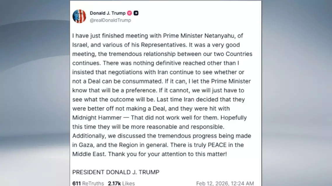 "There was nothing definitive reached other than I insisted that negotiations with Iran continue to see whether or not a Deal can be consummated," Trump said in a post on Truth Social. "If it can, I let the Prime Minister know that will be a preference. If it cannot, we will just have to see what the outcome will be", said Trump.