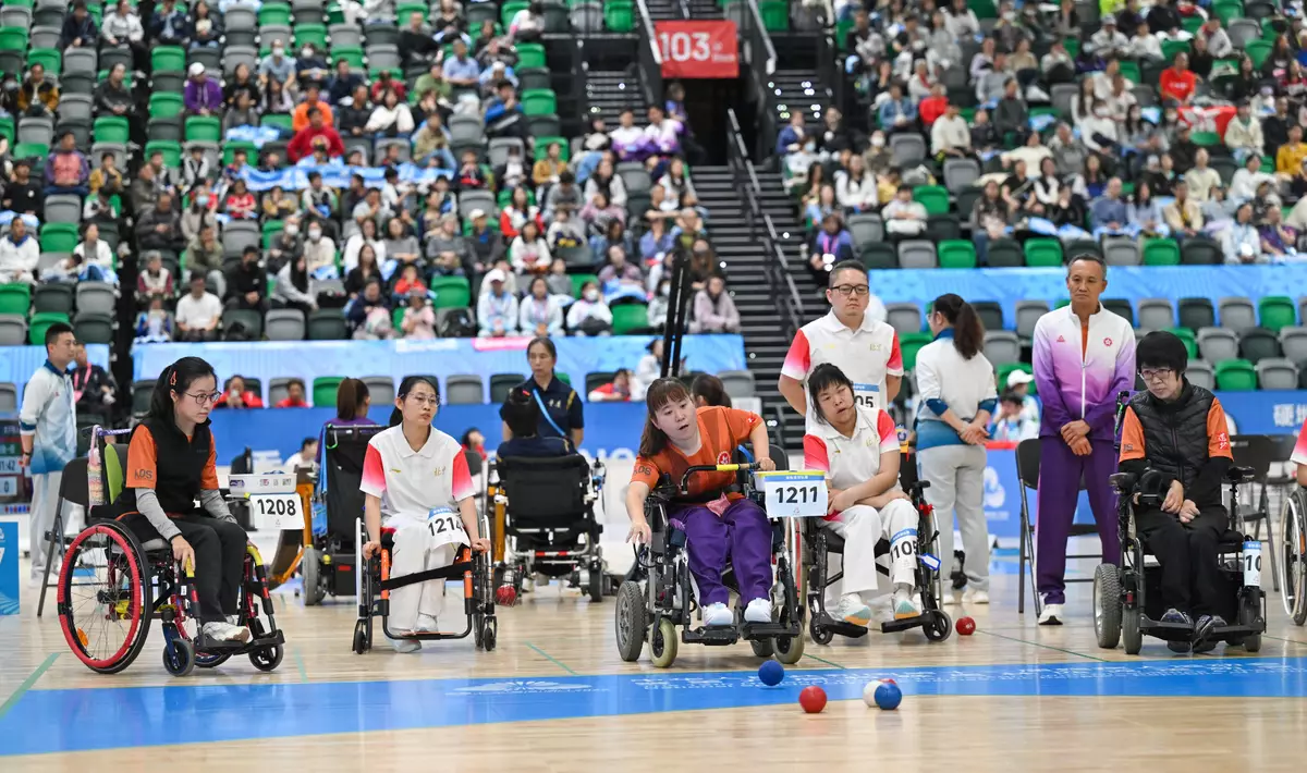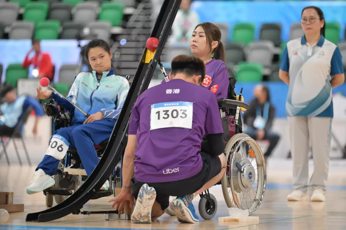 The boccia event was held at Kai Tak Arena, with a total of 14 gold medals awarded. Around 100 athletes from 13 teams from the Mainland, Hong Kong and Macao took part. Among them, Hong Kong sent 11 male athletes and eight female athletes, and won four gold, four silver and four bronze medals, totalling 12 medals.
