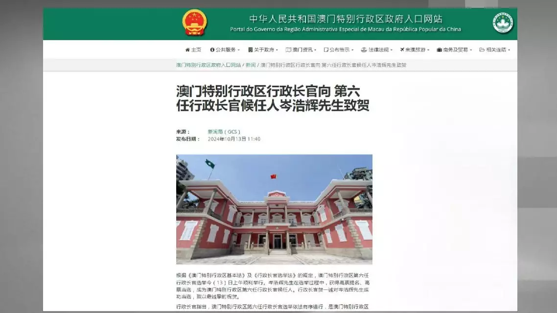 He emphasized that following the relevant provisions of the Basic Law of the Macao SAR and Macao's Chief Executive Election Law, after the Court of Final Appeal confirms the total election results and announces the results in the Macao SAR Gazette, he will submit a report to the Central People's Government and request its appointment of the chief executive.