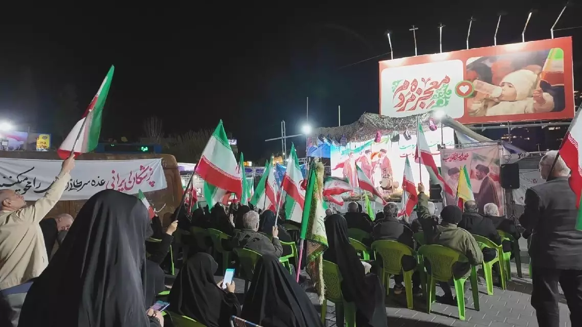 In a community in western Tehran, local residents were seen gathering at a rally site to voice support for the country.