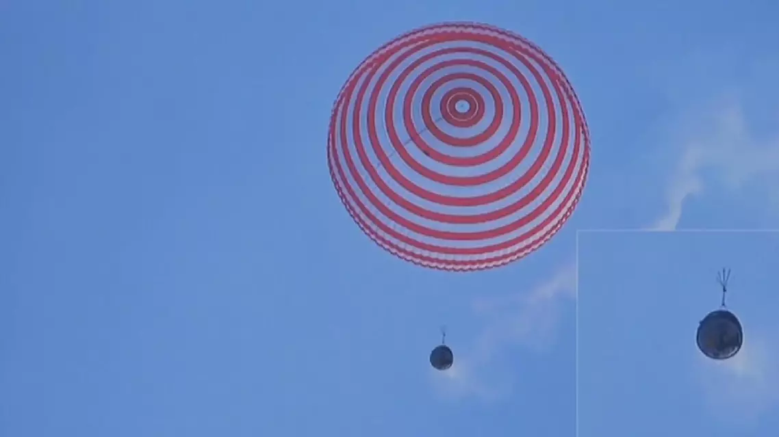 Though without any crew members, the return capsule was instead carrying several space application system items from the space station, including a well-used spacesuit which had far exceeded its service life while supporting some 20 extravehicular activities during space missions.