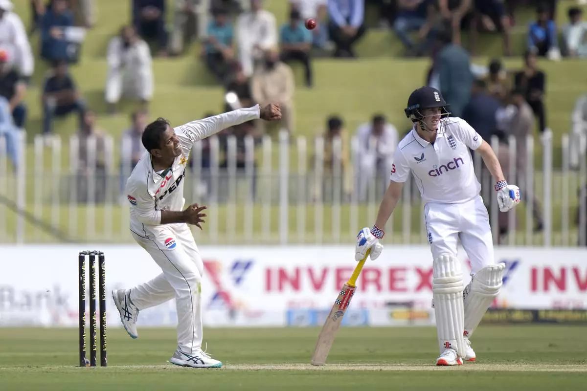 Ali lured Crawley to drive on the offside but the ball flew to backward point, and Khan pinned Ollie Pope (3) and Joe Root (5) leg before wicket in consecutive overs.