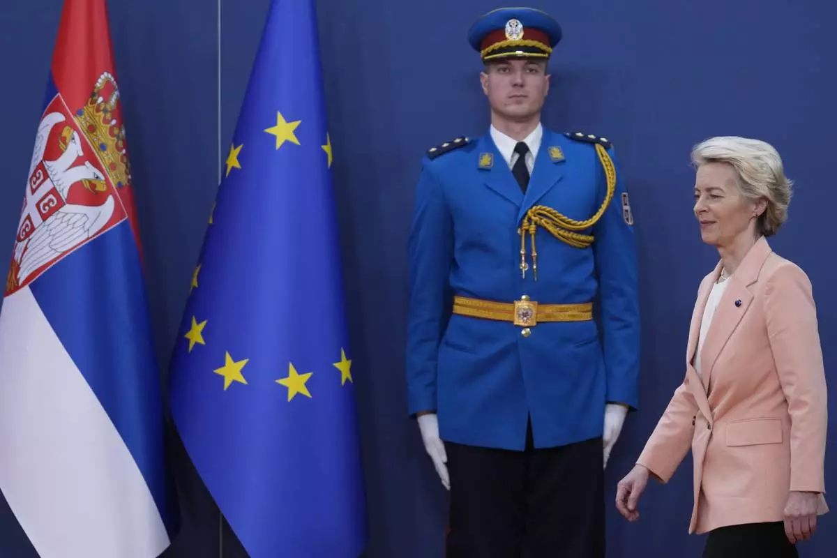 Von der Leyen was in Serbia as part of a trip this week to aspiring EU member states in the Western Balkans to assure them that EU enlargement remains a priority for the 27-nation bloc. From Serbia, von der Leyen will travel to neighboring Kosovo and Montenegro.