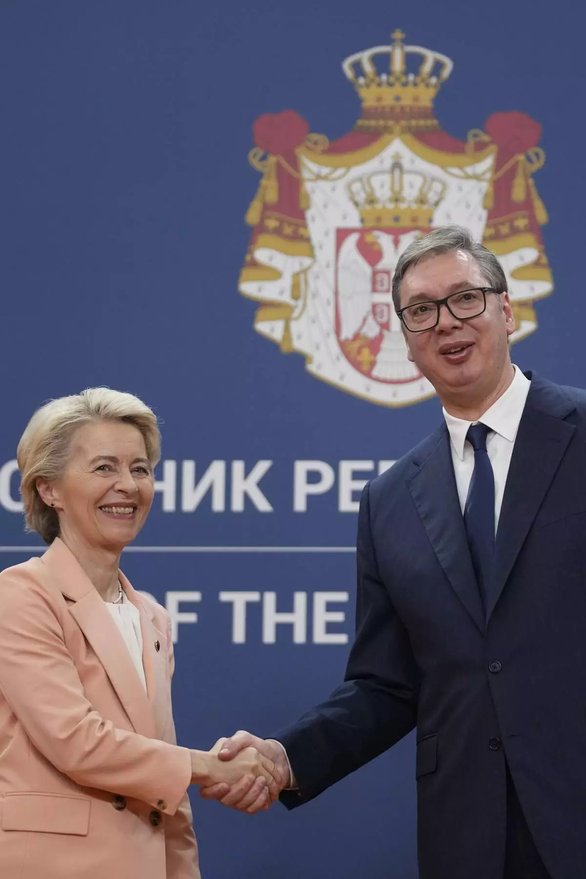 BELGRADE, Serbia (AP) — European Commission President Ursula von der Leyen on Friday praised the Serbian president for meeting her and other European Union leaders instead of attending a Russia-organized summit of developing economies held earlier this week.