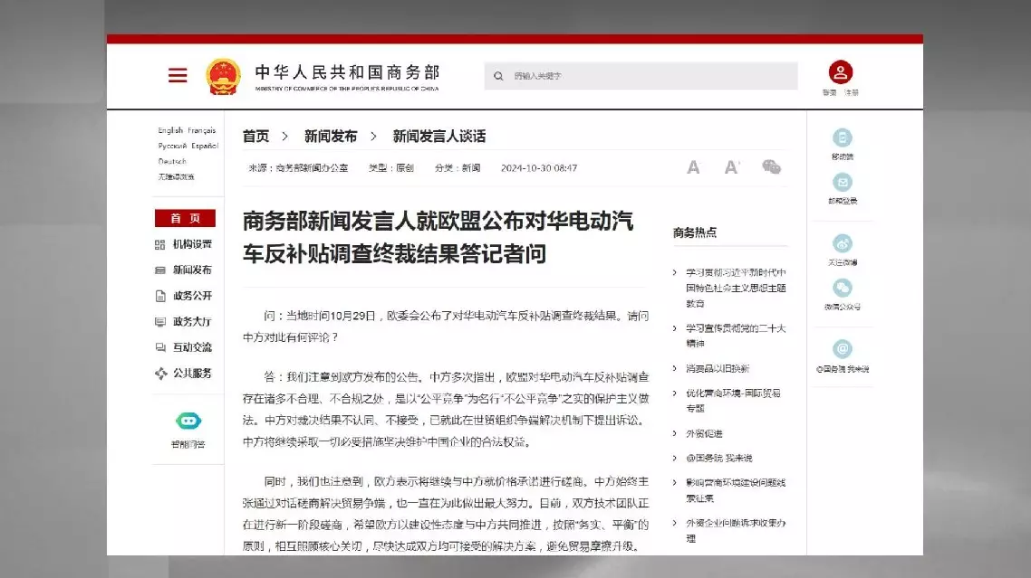 A spokesperson for the Ministry of Commerce stated on Wednesday that China disapproves of and rejects the EU move.