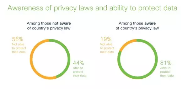 The 2024 Cisco Consumer Privacy Survey* reveals most consumers (53%) are now aware of privacy laws, and informed consumers feel significantly more confident about protecting their data (81% vs. 44%).