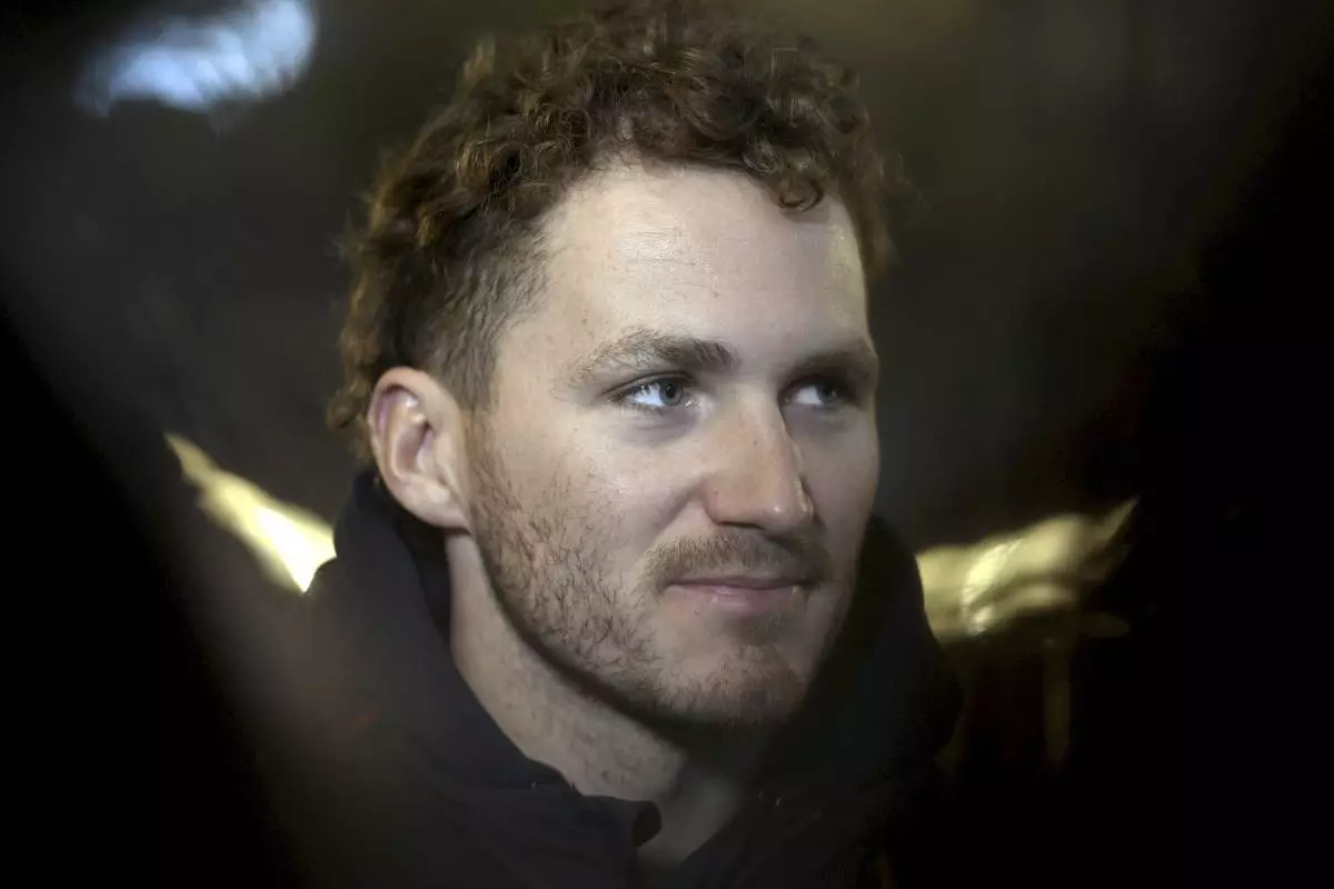 Florida Panthers player Matthew Tkachuk attends a press conference ahead of an NHL Global Series hockey match against the Dallas Stars in Helsinki, Finland Tuesday, Oct. 29, 2024.(Emmi Korhonen/Lehtikuva via AP)