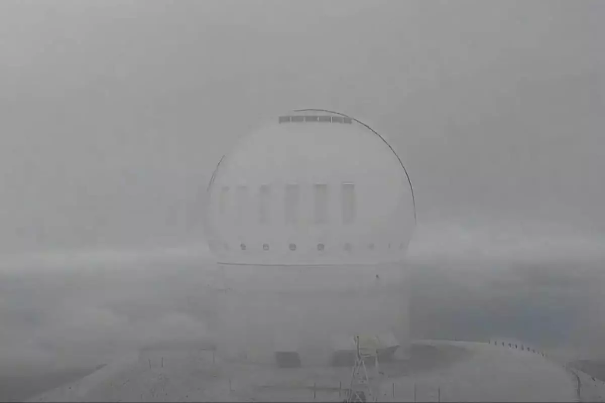 Webcams mounted on the Canada-France-Hawaii Telescope showed the ground covered in white shortly after sunrise on Monday. Two days later, the cameras showed the snow was gone.
