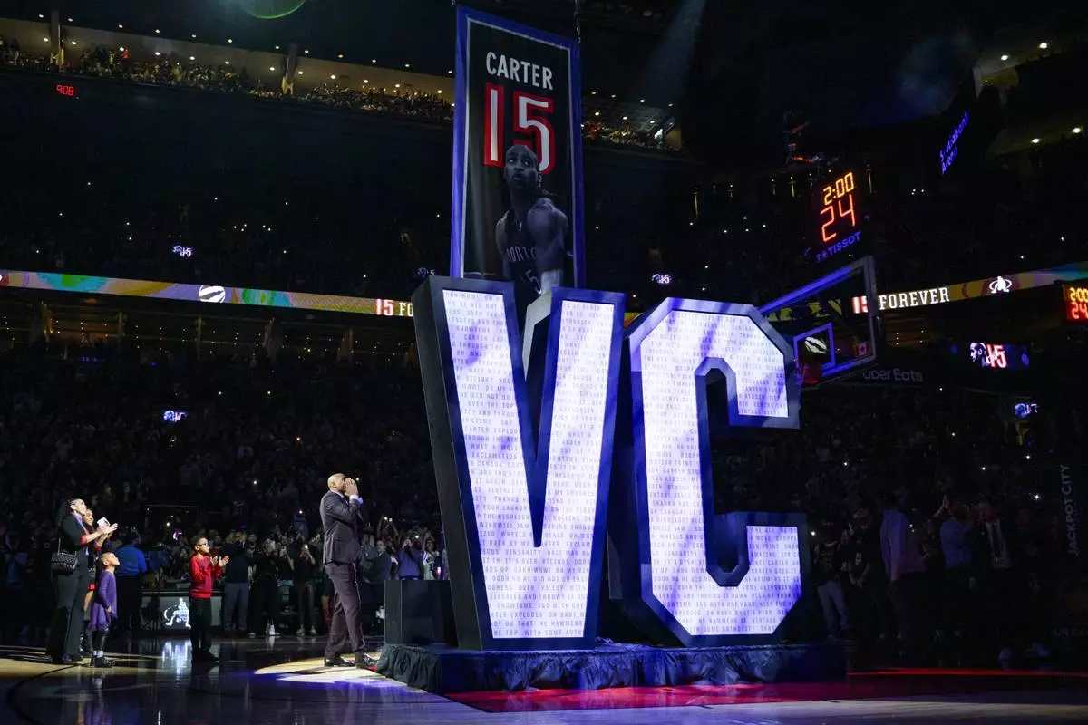 “It’s not just Carter 15 going up, it’s all of us going up,” Carter told fans before a banner with his name and number was lifted to the rafters. “The memories, however you view it, goes up tonight. I hope and pray we enjoy our jersey being retired forever together.”
