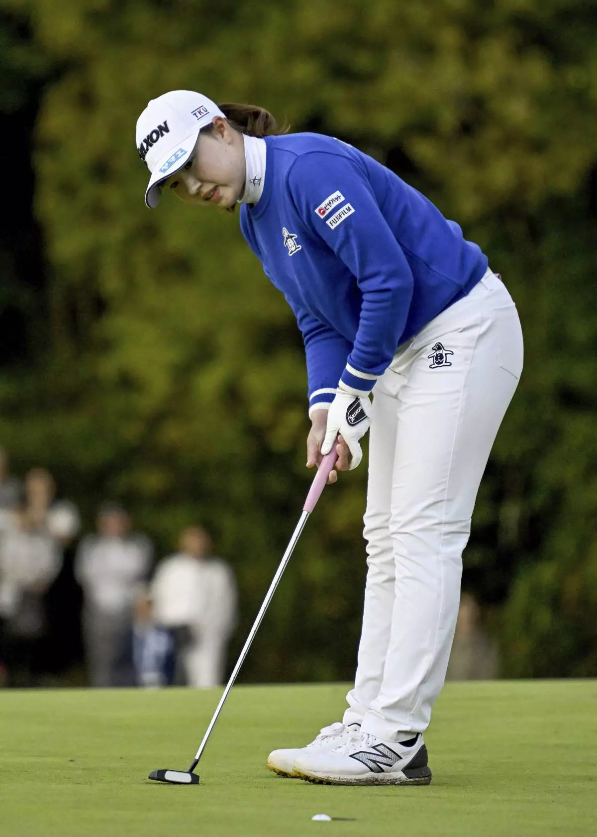 Rio Takeda of Japan makes a put shot in the LPGA's Toto Japan Classic in a playoff at the Seta Golf Course in Otsu, western Japan, Sunday, Nov. 3, 2024. (Keiji Uesho/Kyodo News via AP)