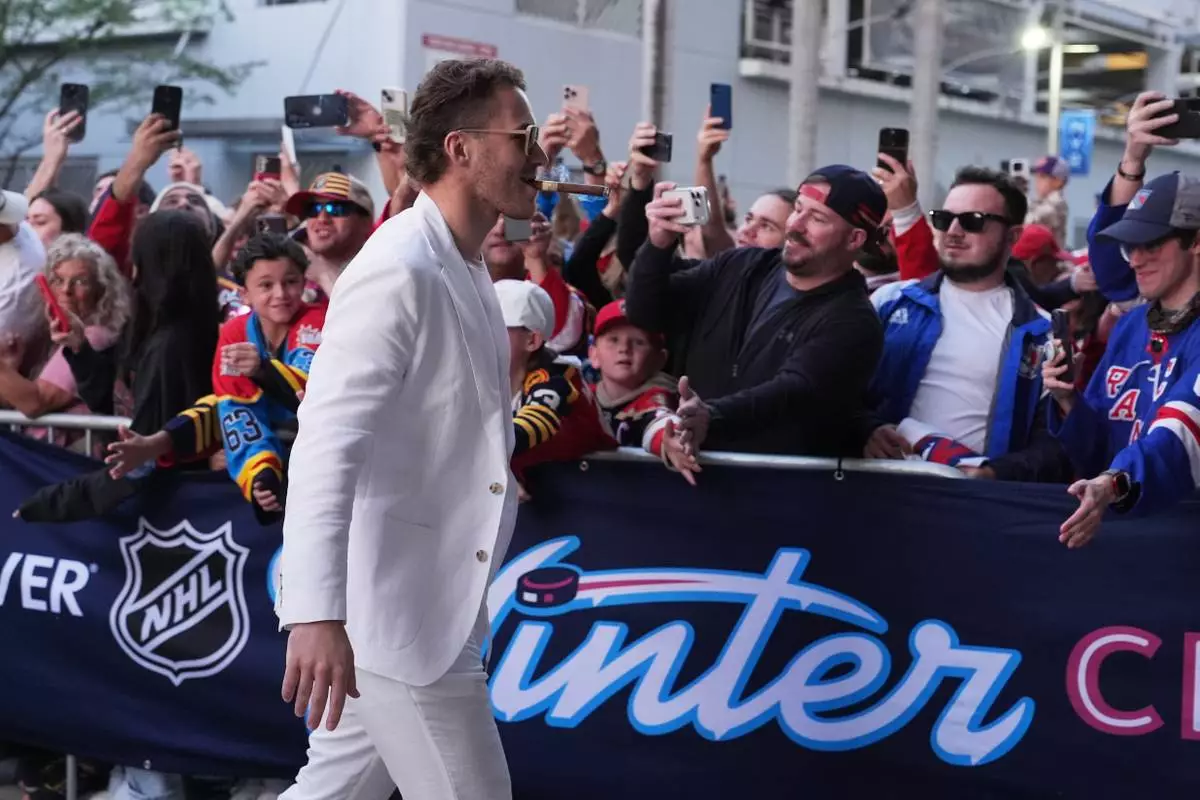 “I would have never thought that I would play in a Winter Classic in Miami and be a part of this cool experience," said Florida center Anton Lundell, wearing a baby pink shirt and blue handkerchief to accent his all-white suit. “Obviously we still have the game left, but everything building up to this game has been awesome. It's been very unique and an experience we're all going to remember for the rest of our lives.”