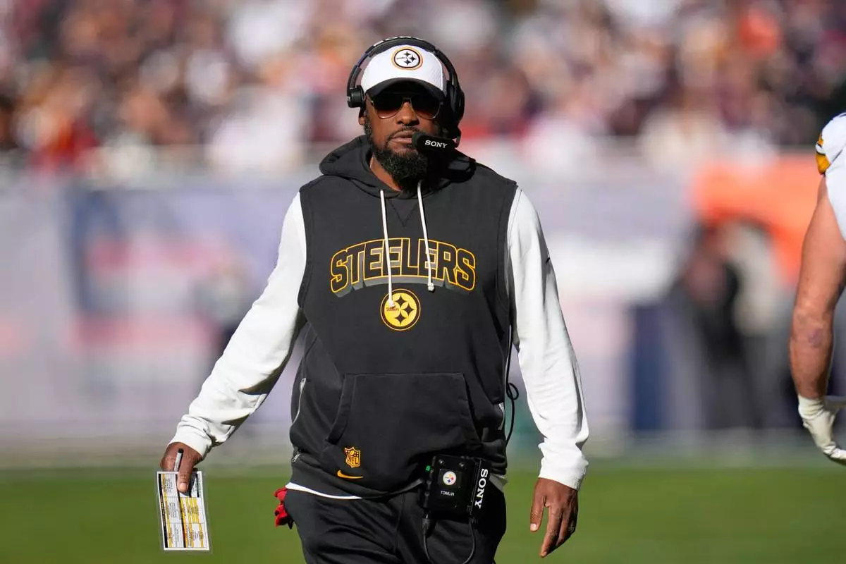 Pittsburgh Steelers head coach Mike Tomlin walks on the sideline during the first half of an NFL football game against the Chicago Bears, Sunday, Nov. 23, 2025, in Chicago. (AP Photo/Erin Hooley)