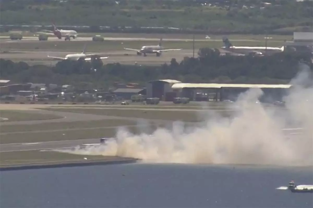 At the same time, a grass fire broke out along one side of a runway, Sydney Airport said in a statement. It was not known if the two events were linked. The fire has been brought under control, but flight delays are expected.