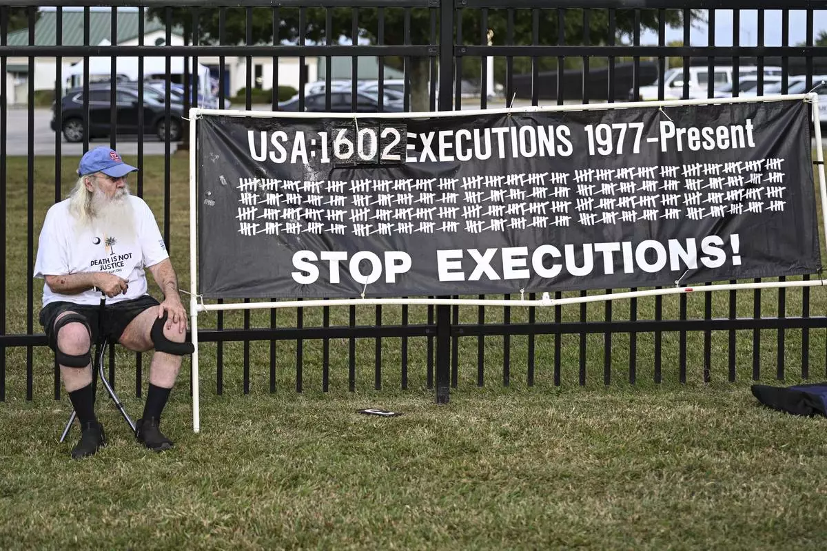 A protestor looks on prior to the scheduled execution of Richard Moore, Friday, Nov. 1, 2024, outside of Broad River Correctional Institution in Columbia , S.C. (AP Photo/Matt Kelley)