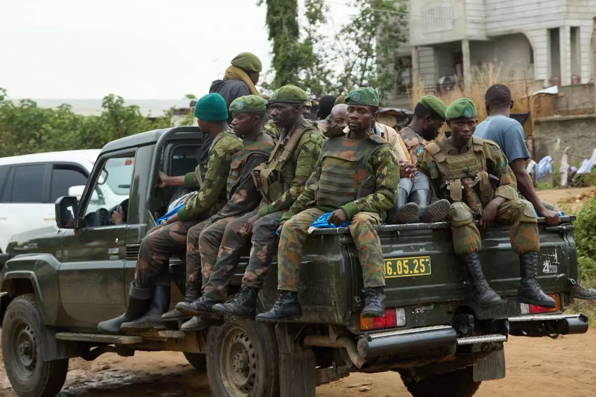 Soldiers patrol as thousands of people fleeing fighting in Congo's South Kivu province arrive in Cibitoke, Kansega, Burundi, Thursday, Dec. 11, 2025. (AP Photo/Berthier Mugiraneza)